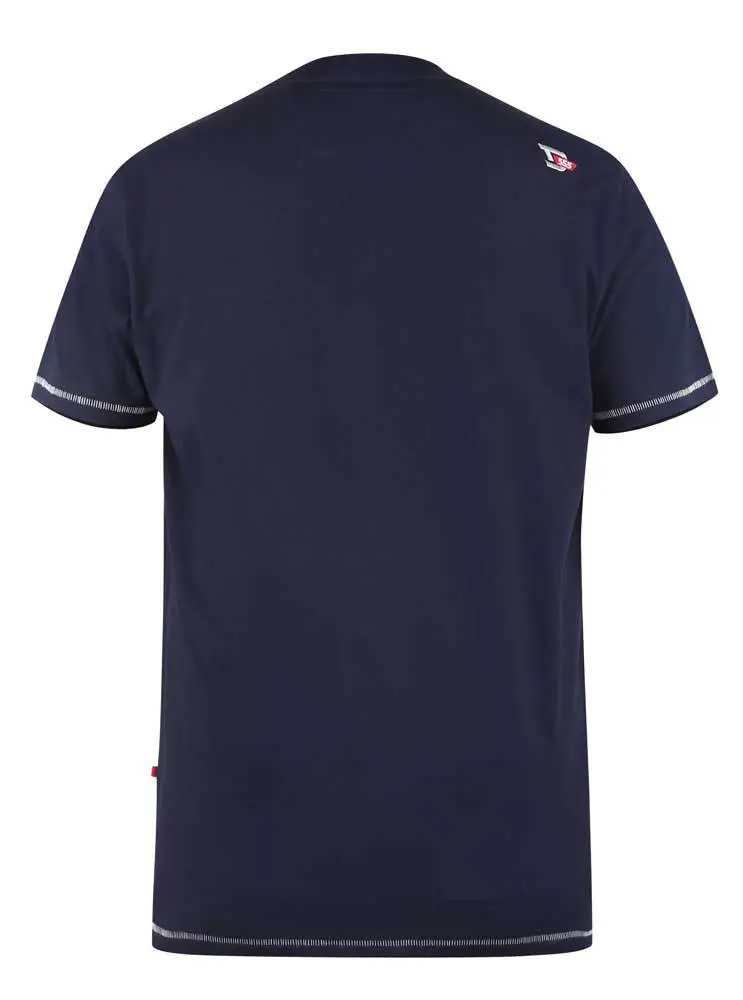 Navyblå T-shirt med "guitar" tryk fra D555 til den høje mand. Den navyblå farve er så mørk, at den næsten går over i den sorte farve.