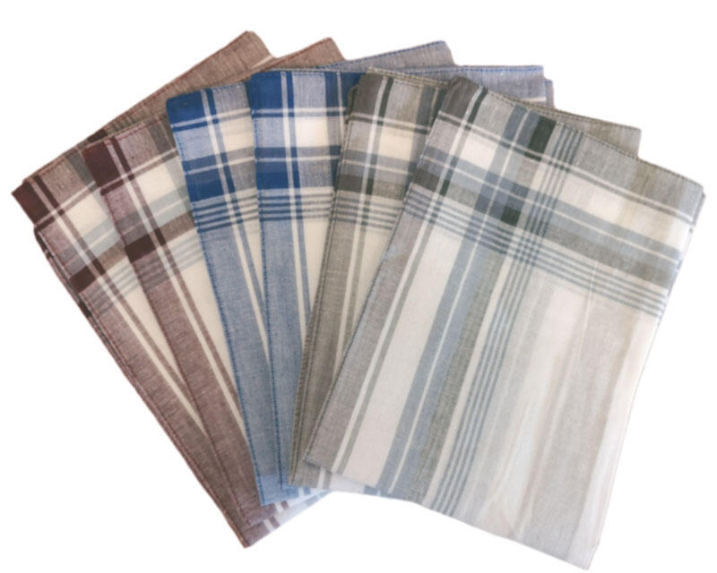 Pakning: 6 stk. herrelommetørklæder: Hvid grundfarve, 2 stk. med blå kontrast, 2 stk. grøn og 2 stk. rød.