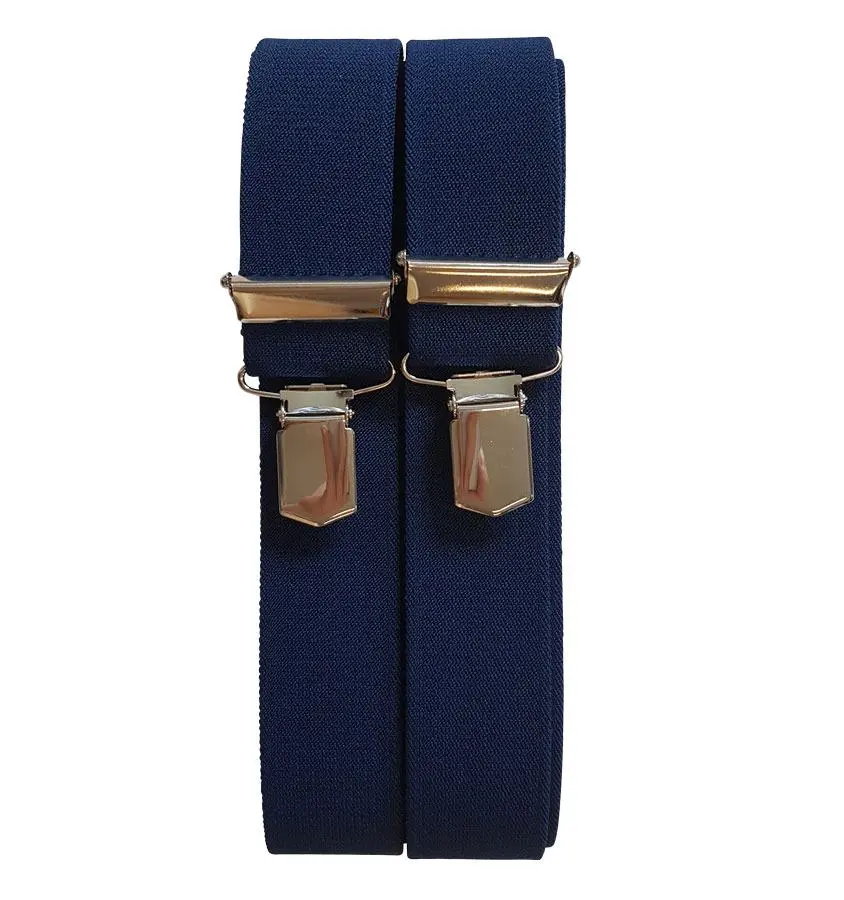 Marineblå brede seler. Selerne er 3,3 cm brede. Selerne har kraftige klemmer som "bider" sig fast og slipper ikke igen.