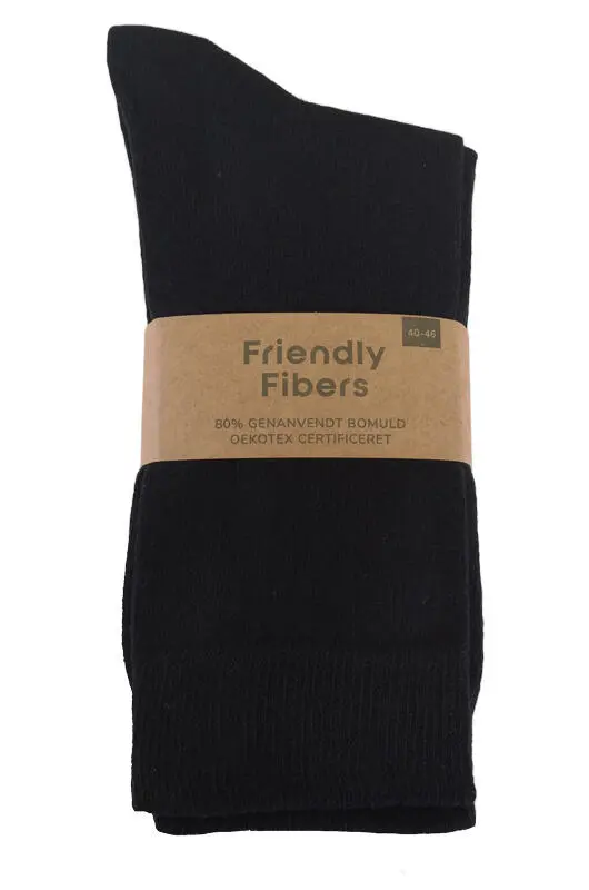 5-pak sorte strømper i 80% genanvendt bomuld - Friendly Fibers