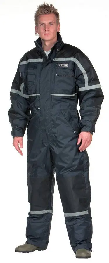 Koksgrå termokedeldragt er en to-farvet heldragt med aftagelig komforthætte. Den er med tovejs lynlås og velcrolukket overfald på fronten. Taljelang tovejs lynlås langs sidesømmene på benene.