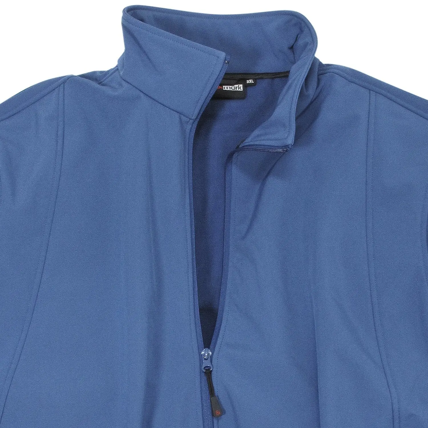 En tynd og let kongeblå softshell jakke i store størrelser. Softshell jakken er vandafvisende, vindtæt og åndbar og så har den tapede sømme.