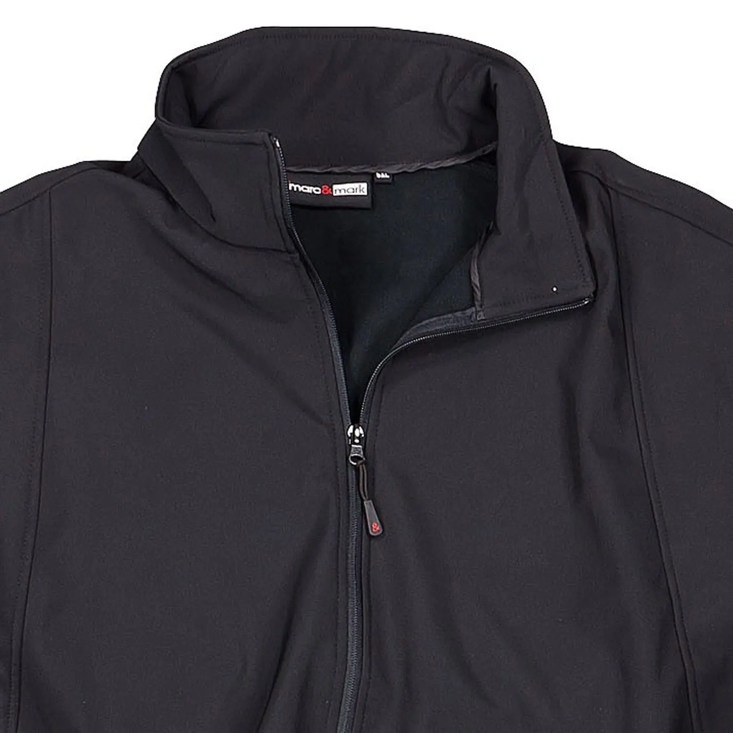 En tynd og let sort softshell jakke i store størrelser. Softshell jakken er vandafvisende, vindtæt og åndbar og så har den tapede sømme.