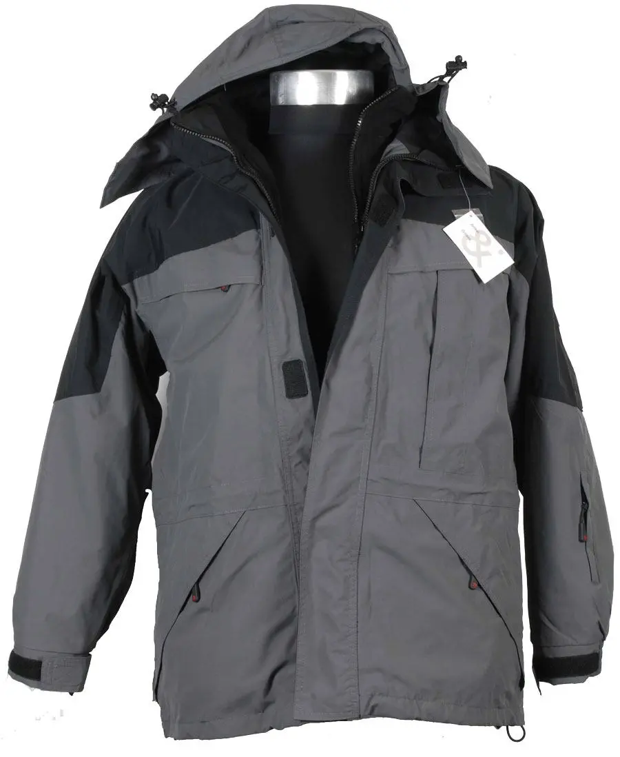 Skaljakken har en høj krave, som kan beskytte halsen i det kolde vejr, og jakken har desuden en hætte, som kan lukkes helt tæt til hovedet, men både snoretræk og velcro. Hvis man ikke ønsker at bruge hætten, kan den lynes af jakken. Skaljakken har to stiklommer foran samt en brystomme på hver side af jakken.