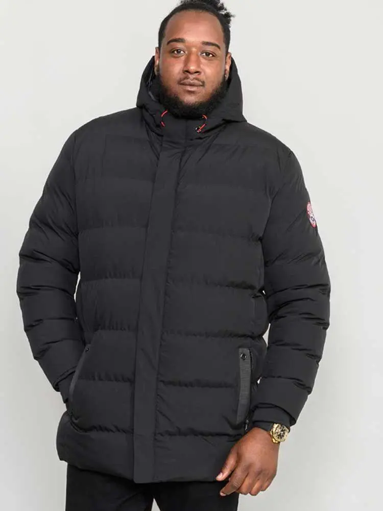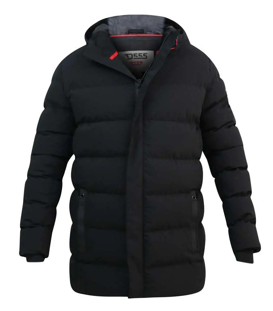 Sort dynejakke / quiltet vinterjakke fra D555 med hætte. Jakken har 2 gode stiklommer der kan lukkes med lynlås samt 1 inderlomme. Jakken er med gennemgående lynlås samt en stolpelukning der lukkes med velcro. Jakken har et glat indvendigt for der gør jakken let at tage af og på.