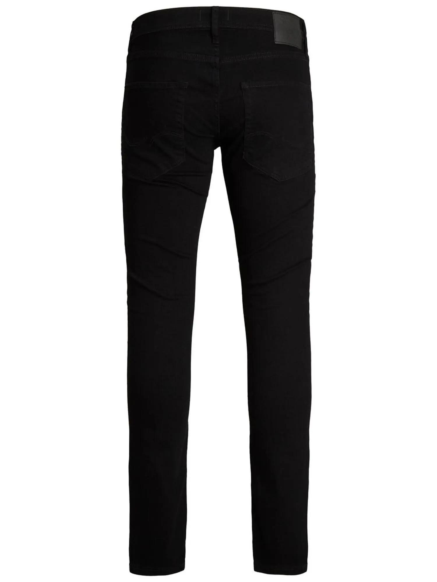 Sorte denim jeans fra Jack & Jones. Disse jeans har slim fit pasform og lav talje. Bukserne har tapered fit, som betyder at de er indsnævrede fra lår og nedefter.