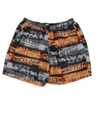 Grå/orange badeshorts fra Abraxas med surferprint og tekst med "Surf up" og "California". Badeshortsene er med 2 stiklommer foran, hvoraf den ene er med lynlås, så man ikke taber ting, når man går på stranden og ved poolen. Der er endvidere en baglomme med velcro luk.