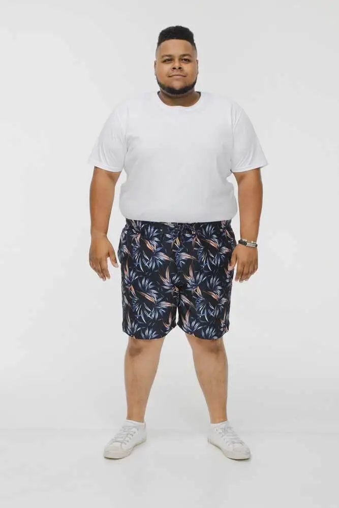 Disse stilfulde shorts er fremstillet med et iøjnefaldende hawaiiansk print i marineblå og livlige blå og orange nuancer.