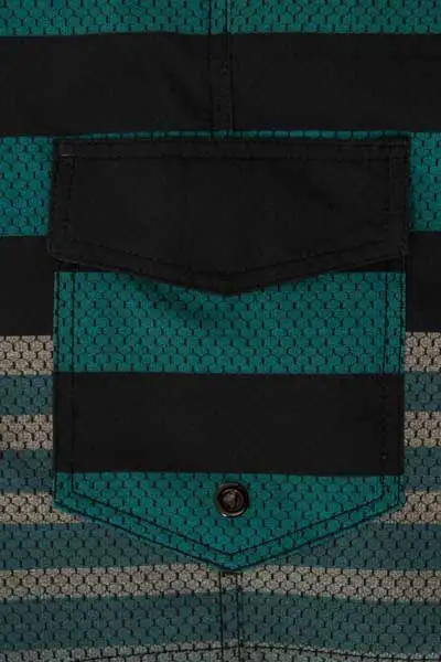 Alle farverne går hele vejen rundt, så kombinationen af farver er ens forfra og bagfra. Rundt i taljen sidder der elastik og et bindebånd. I siderne er der stiklommer.