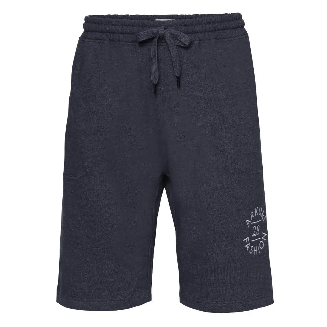 Navymeleret sweatshorts med lynlåslommer er i en lækker blød kvalitet og de har et flot hvidt broderi på venstre lår. Bukserne har to lommer foran og der er elastik og justerbar snor i livet.