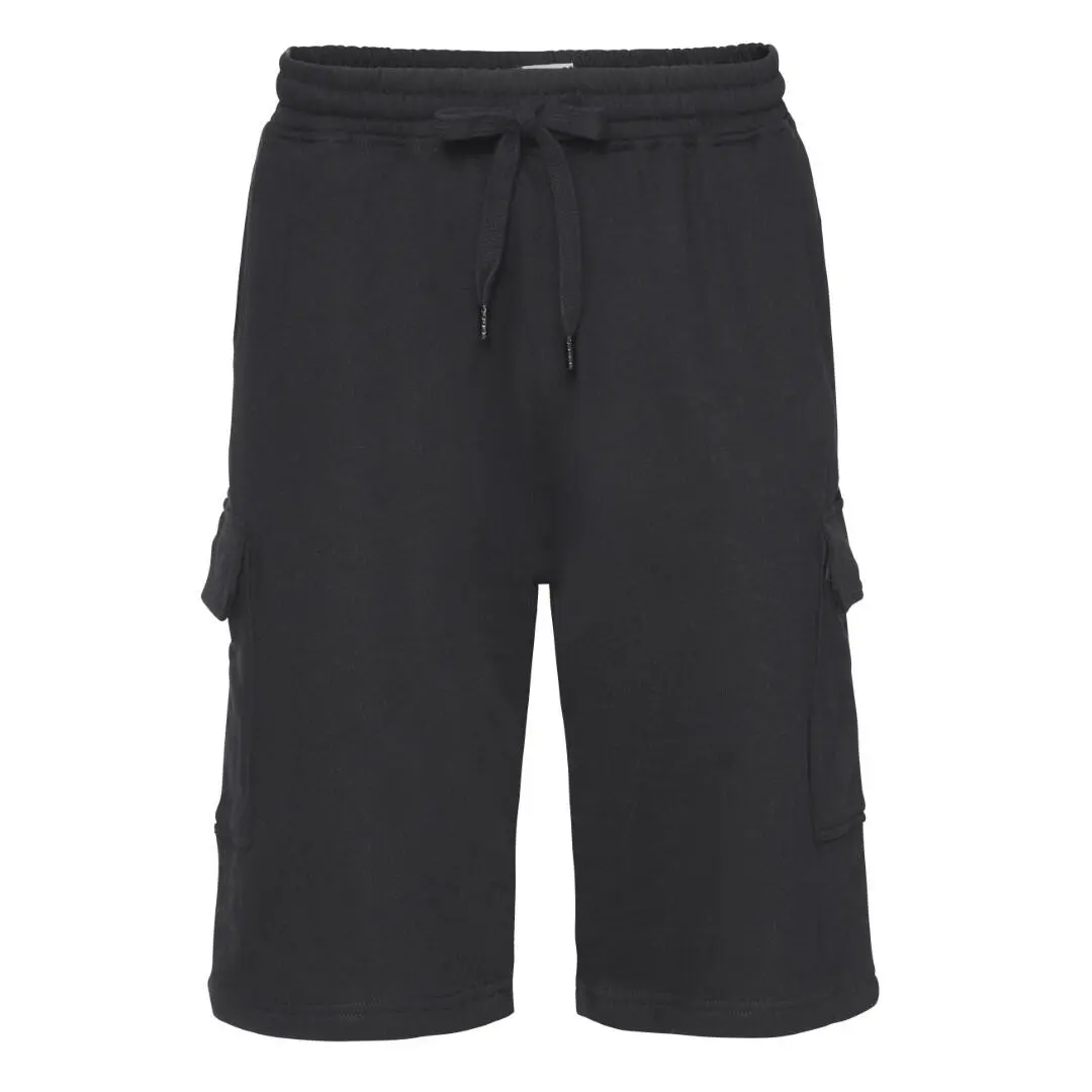 Disse sorte cargo sweatshorts er i en lækker blød kvalitet. Bukserne har to stiklommer foran samt to lårlommer der lukke med velcro. Der er elastik og justerbar snor i livet.