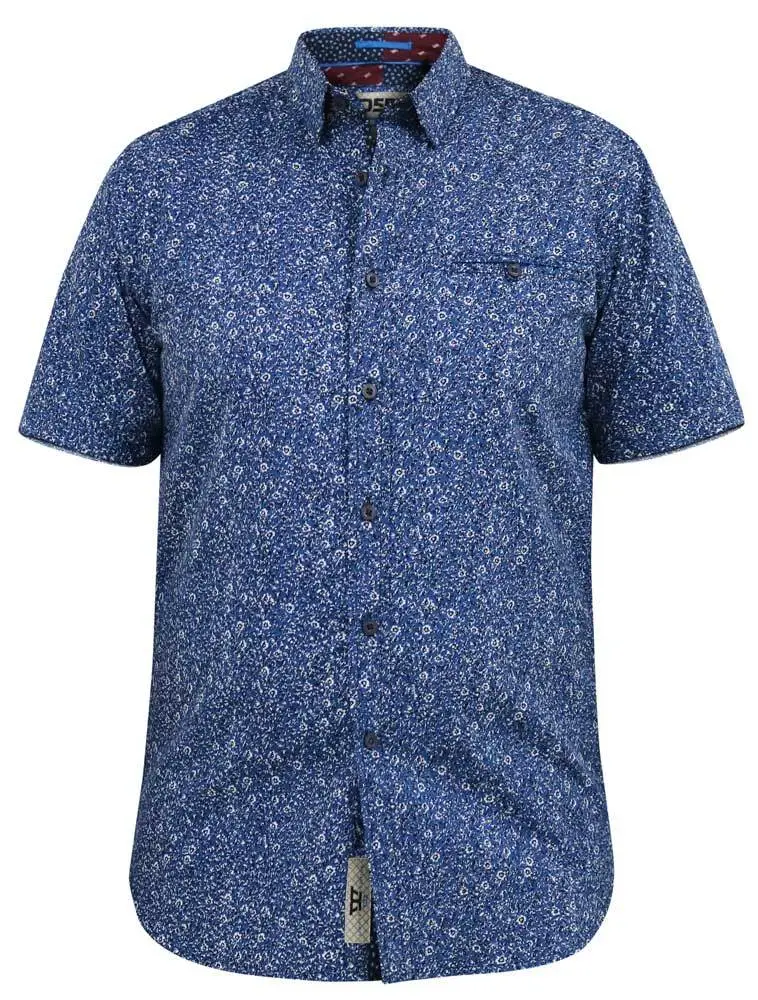 Blå kortærmet skjorte med mikro sort/hvidt mønster (K/Æ) - D555