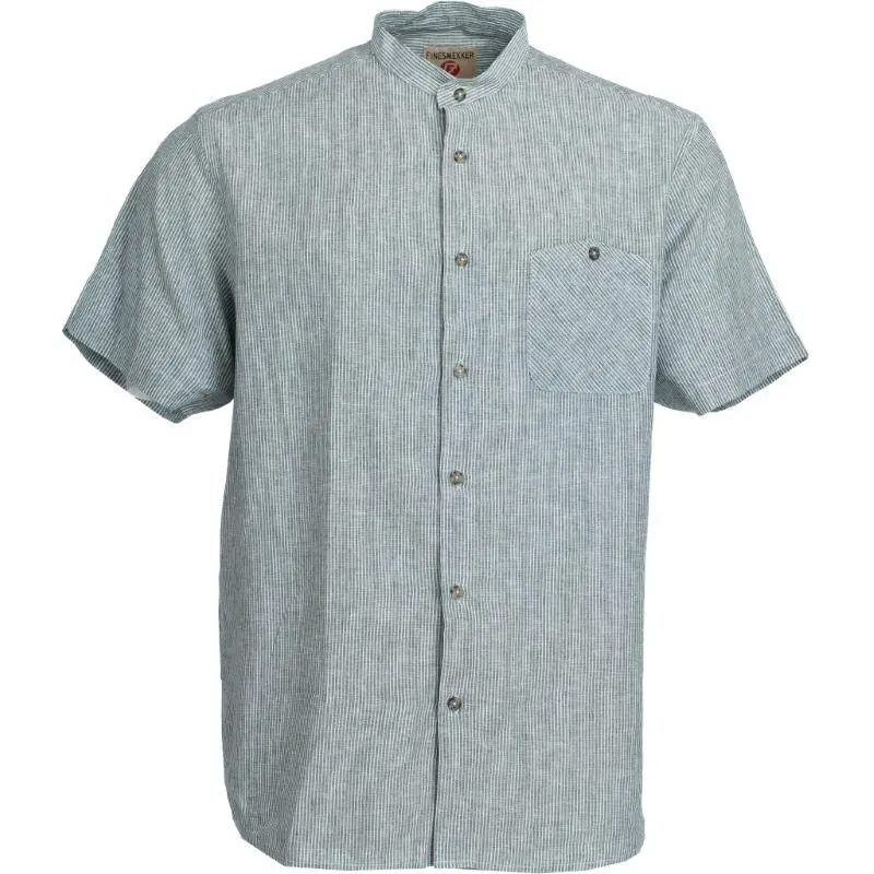 Grøn- og hvidstribet hør/bomuld skjorte med smalle striber og kinakrave (K/Æ) - Finesmekker