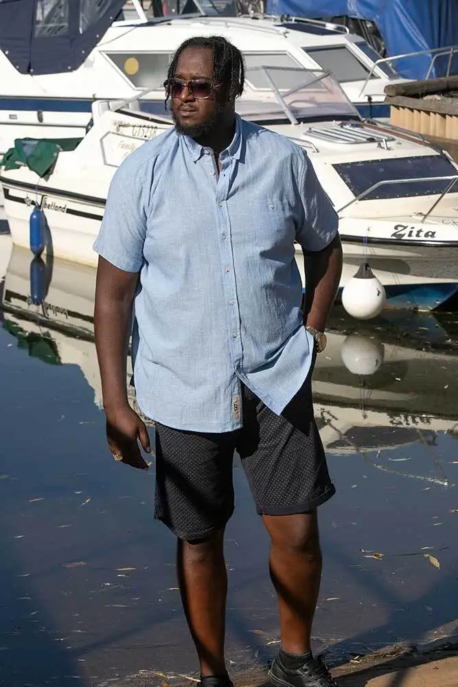 Lækker kortærmet lys blåmeleret skjorte fra D555 der kombinerer det simple med det sofistikerede.