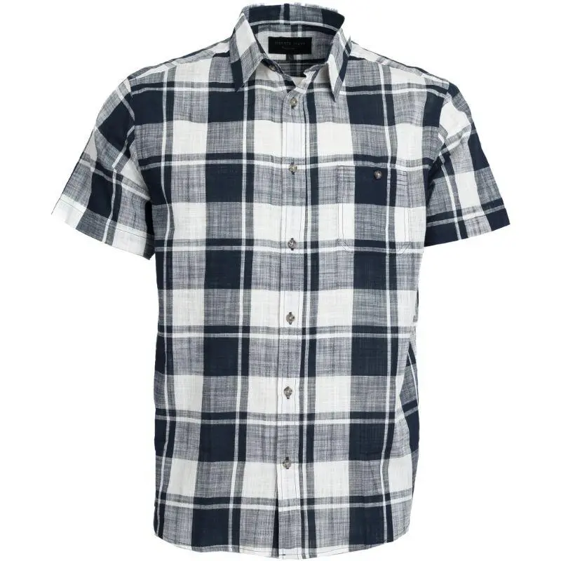 Et stort ternet mønster i mørk navyblå og hvid pryder denne skjorte, disse tidløse nuancer gør den ideel at kombinerer med et væld af andre farver.