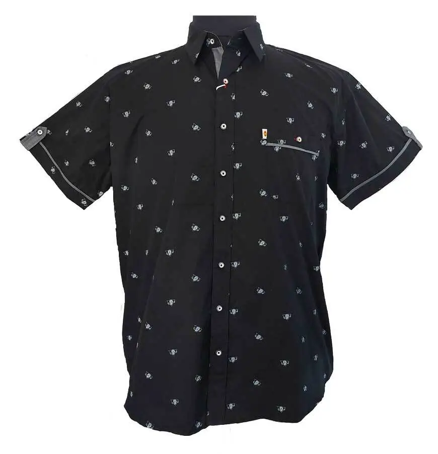 Sort skjorte med korte ærmer fra Kamro. Der er en brystlomme i venstre side. Lommen lukkes med en knap.