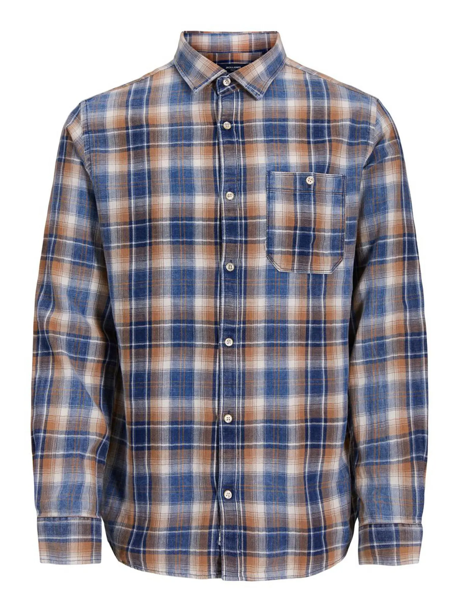 Blød og let skjorte i flere farver fra Jack & Jones. Skjorten har et ternet mønster i denim-blå, brun og off-white.
