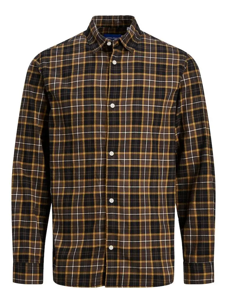 Flerfarvet ternet twill skjorte i brun/gul/sort (L/Æ) - Jack & Jones