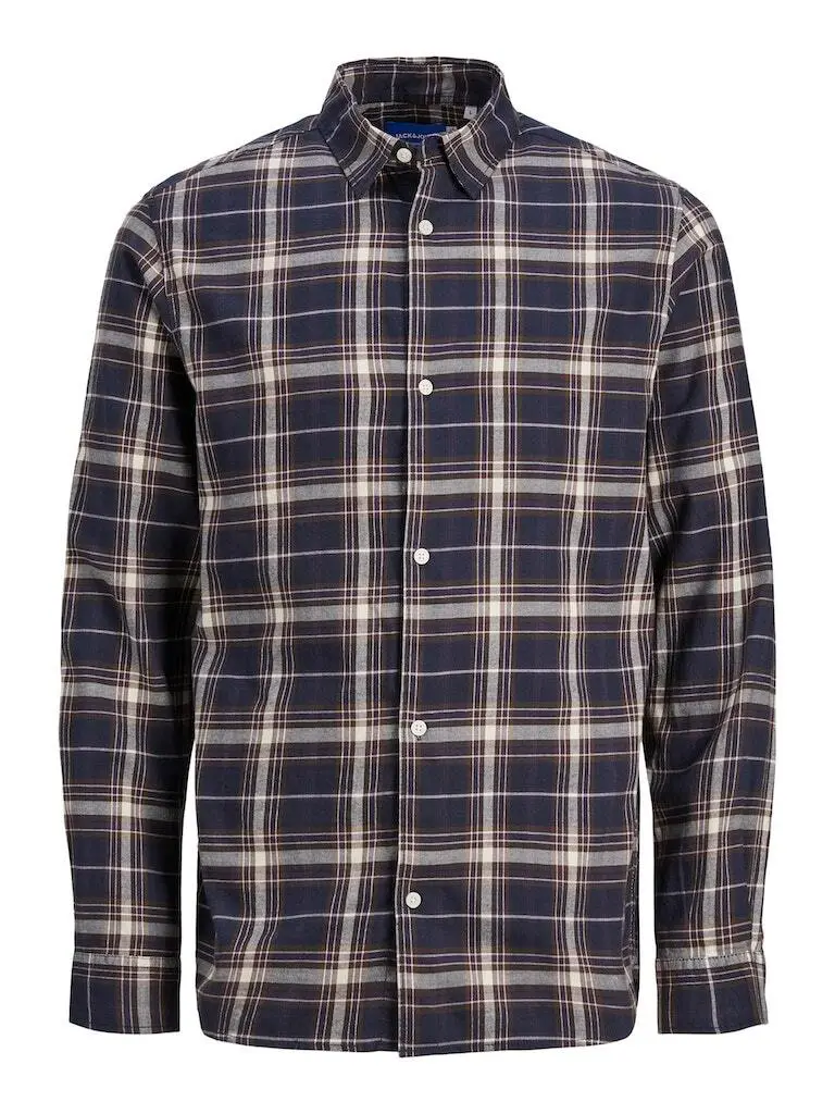 Flerfarvet ternet twill skjorte navy/lilla/brun/hvid (L/Æ) - Jack & Jones