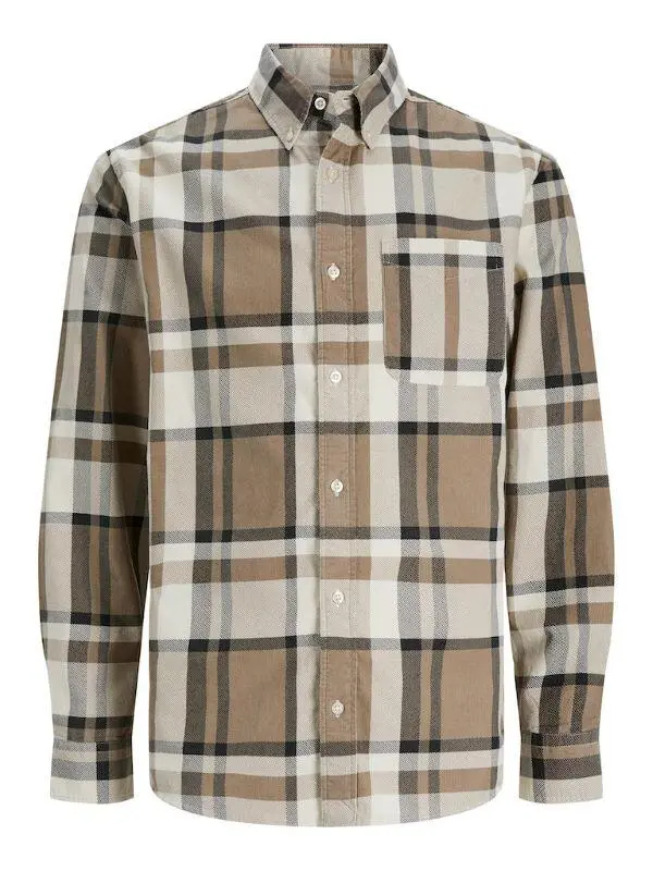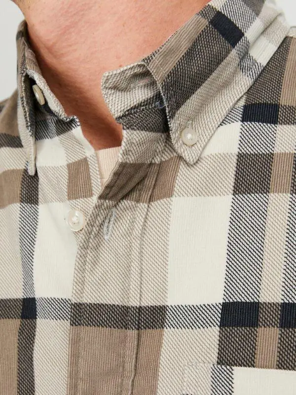 Sandfarvet ternet fløjls skjorte (L/Æ) - Jack & Jones