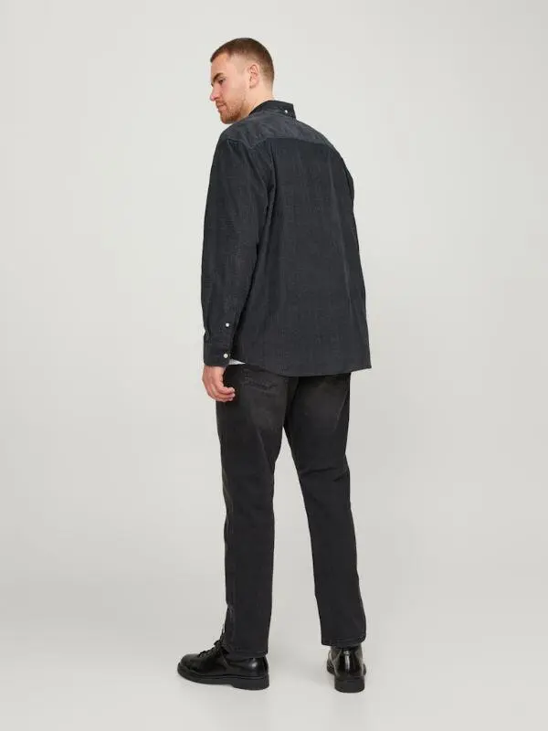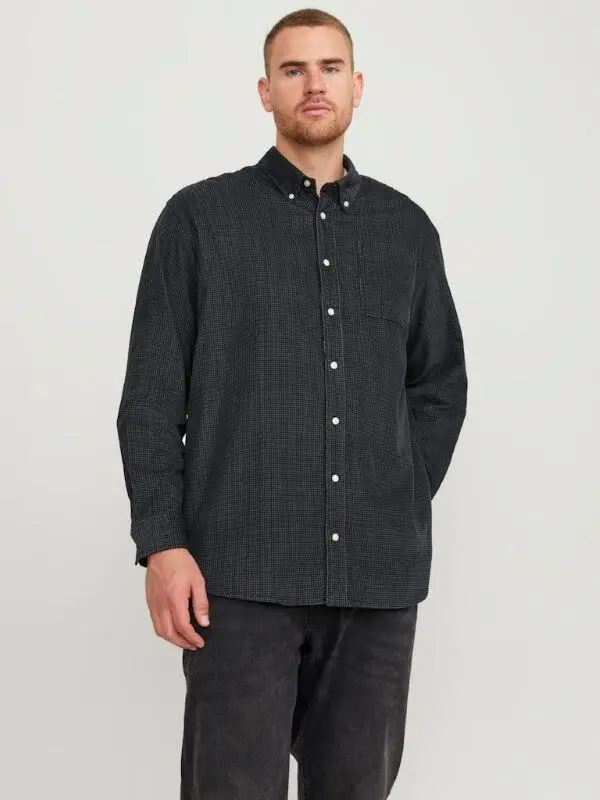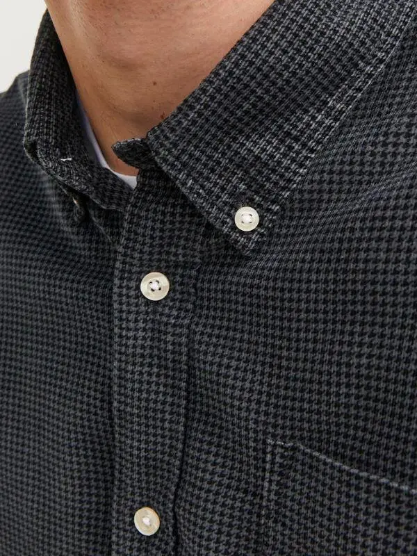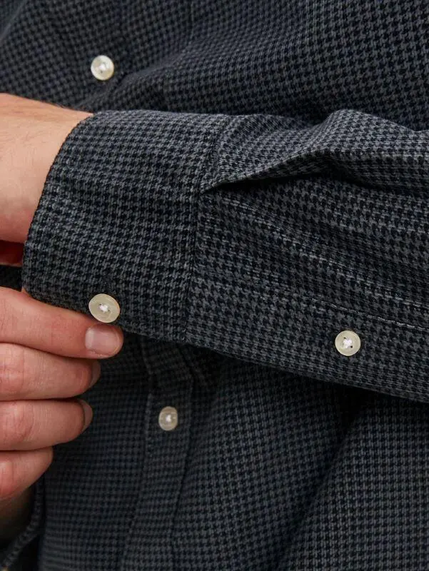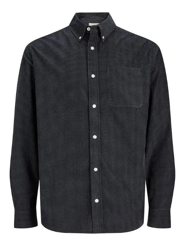 Sort/grå mini dogtooth fløjls skjorte (L/Æ) - Jack & Jones