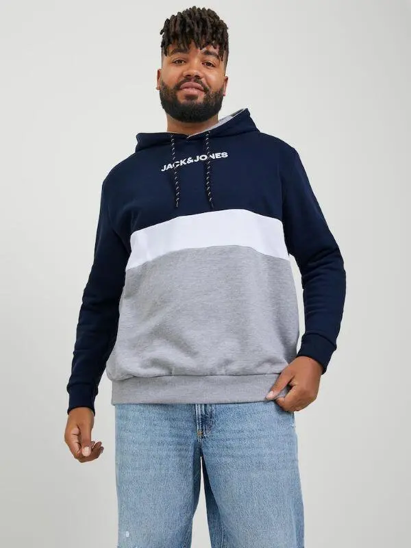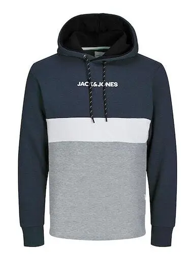 Navy/hvid/grå hoddie med logo på brystet - Jack & Jones
