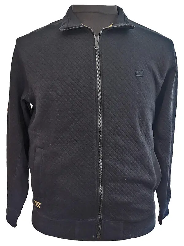 Sweatjakke i mørk navyblå med gennemgående lynlås. Der er to stiklommer på fronten, og god bred ribkant i bunden af trøjen, samt på ærmer.
