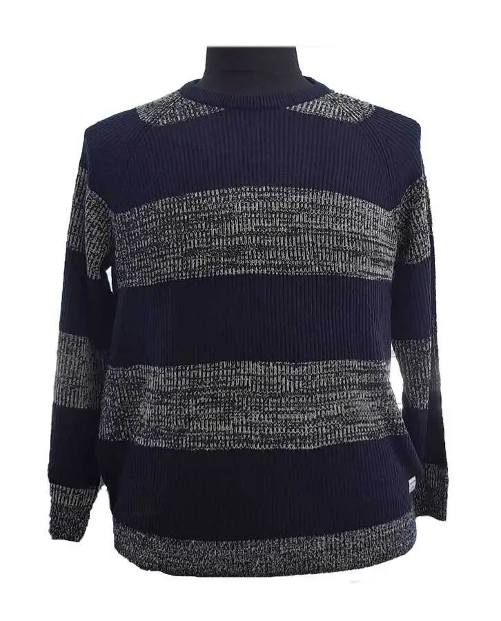 Stribet navy og hvid striktrøje fra Jack & Jones. Trøjen har ribkant i ærmerne, i bunden og i halsen.