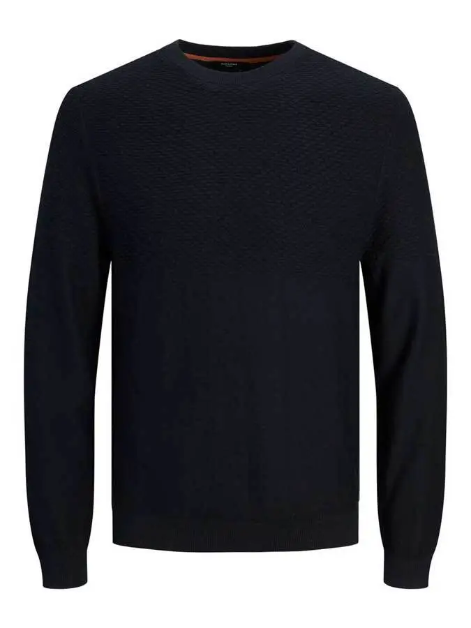 Navyblå strikket pullover fra Jack & Jones. Denne striktrøje er dejlig blød, den har rund hals og ribkanter.