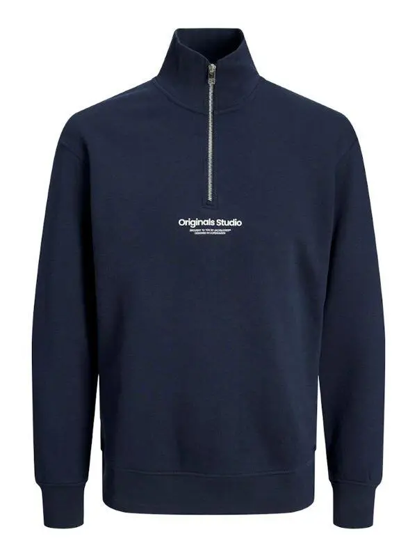 Navyblå sweatshirt med lynlås i halsudskæring - Jack & Jones