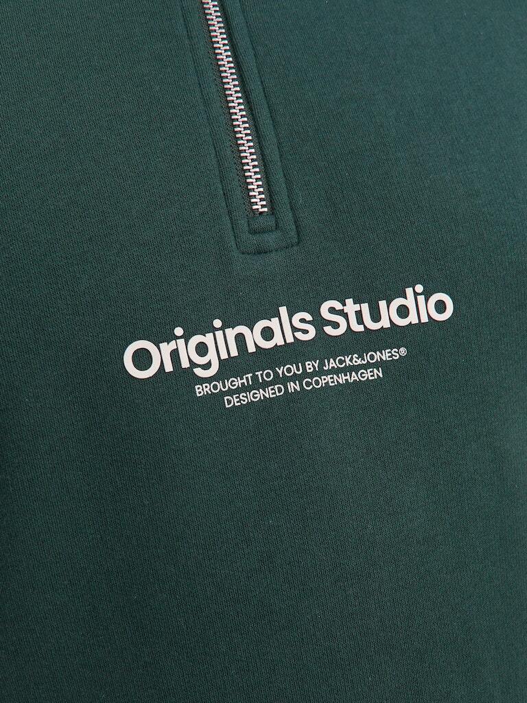 Under lynlåsen er der er hvidt gummiprint med teksten "ORIGINALS STUDIO - Brought to you by Jack & Jones. Designed in Copenhagen".