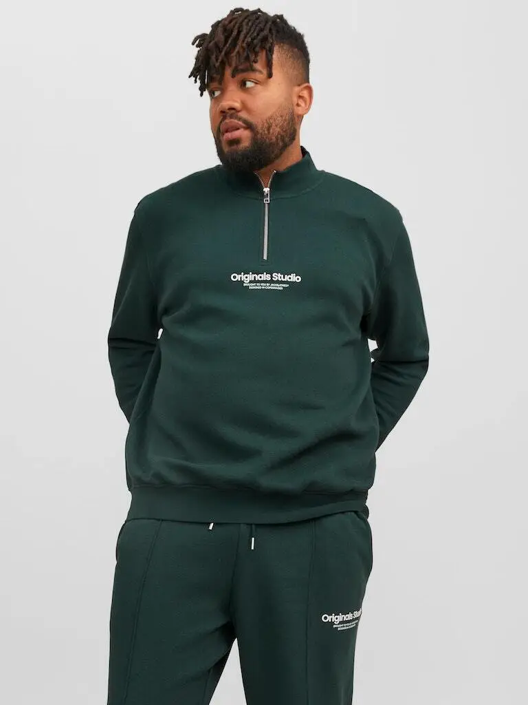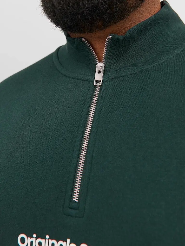 Petroleumsgrøn sweatshirt med lynlås i halsudskæring - Jack & Jones