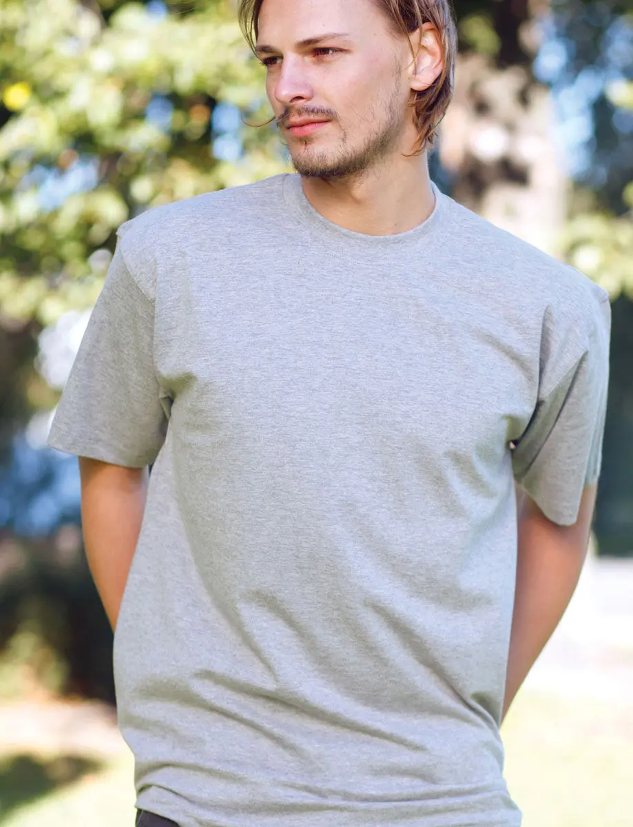 Kortærmet T-shirt med o-hals. Lækker kvalitet. Meget slidstærk og en lang længde.