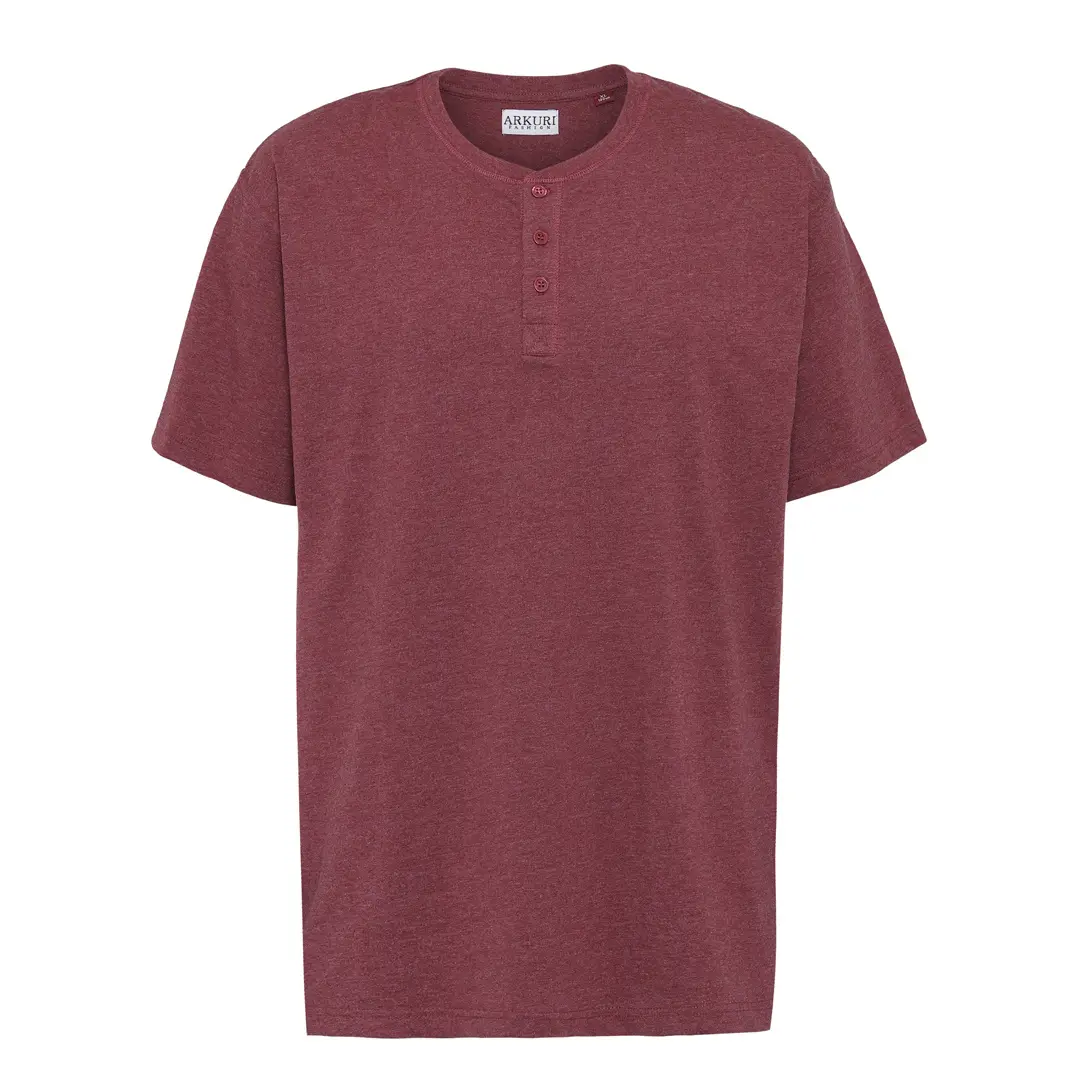 Rødmeleret, blød og lækker Grandad T-shirt med korte ærmer og rund-hals. Grandad T-shirten har 3 matchende knapper i stolpelukningen.