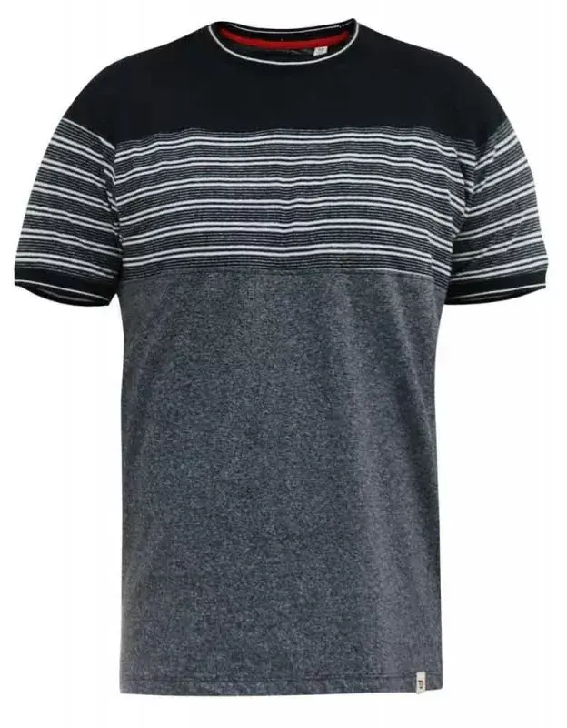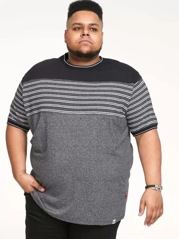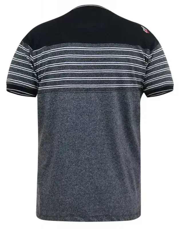 Sort meleret T-shirt med striber og rib detaljer - D555