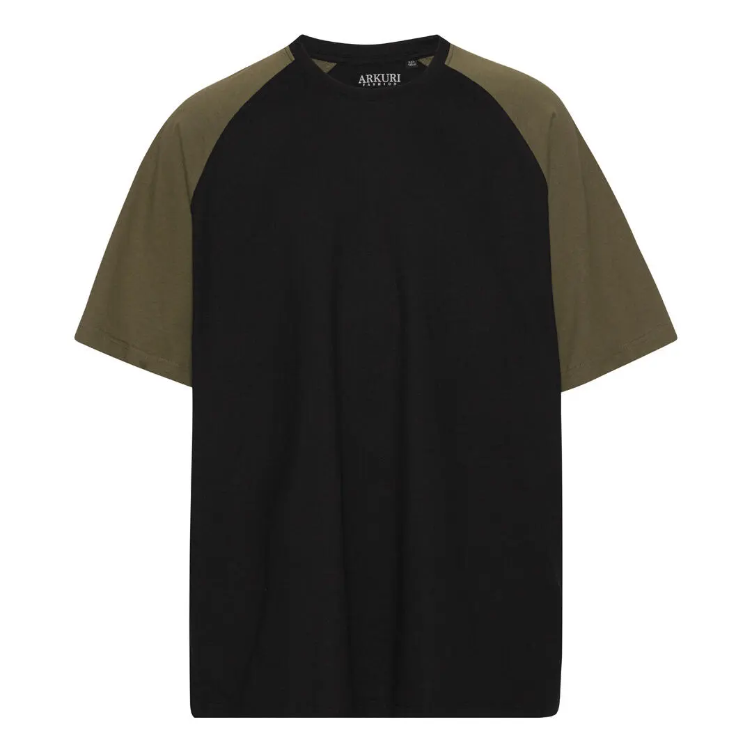 Sort T-shirt med kontrast armygrønne raglanærmer.