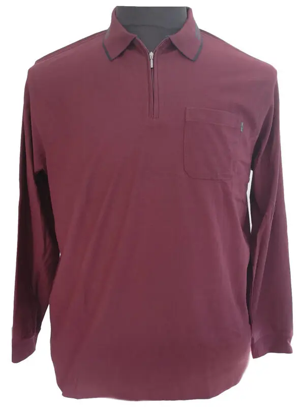 Bordeaux rød langærmet polo-shirt m. lynlås (L/Æ) - Roberto
