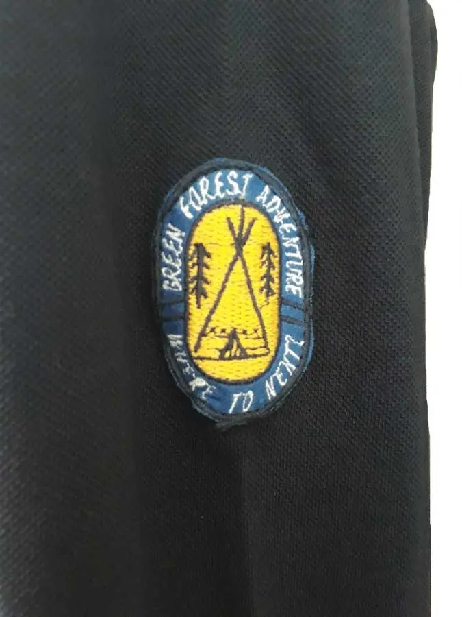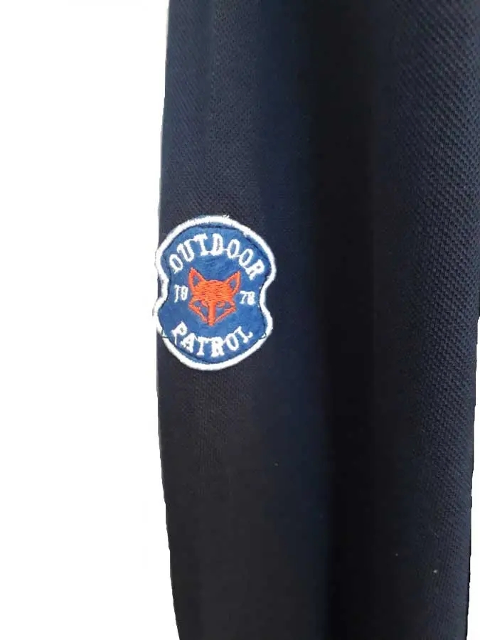 Brystlommen som sidder i venstre side lukkes med knap. Ovenover brystlommen sidder en rund badge. I højre side sidder også 2 badges. Der er tilmed en badge på hver ærme.