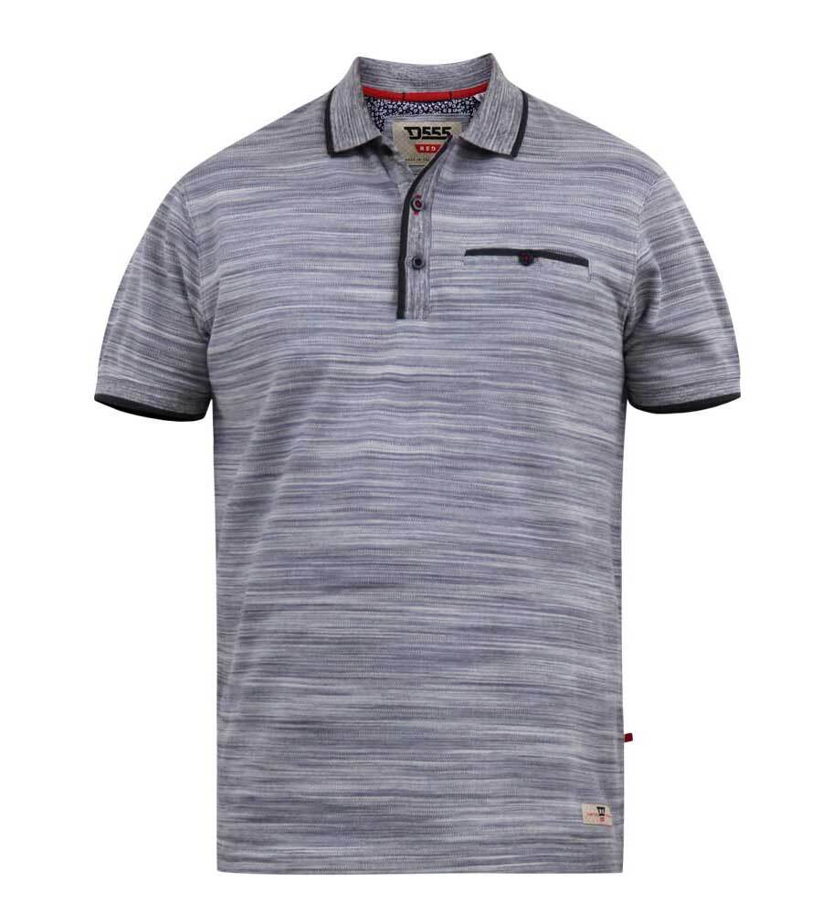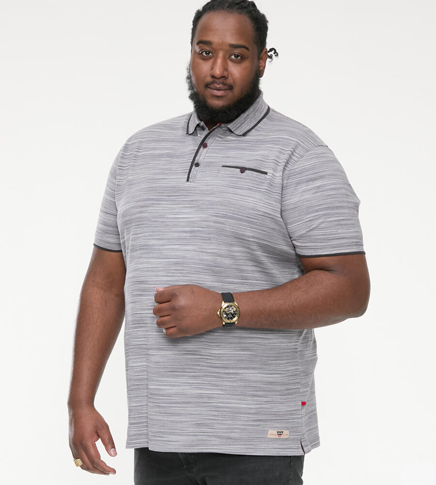 Grå meleret polo-shirt med kontraststriber - D555