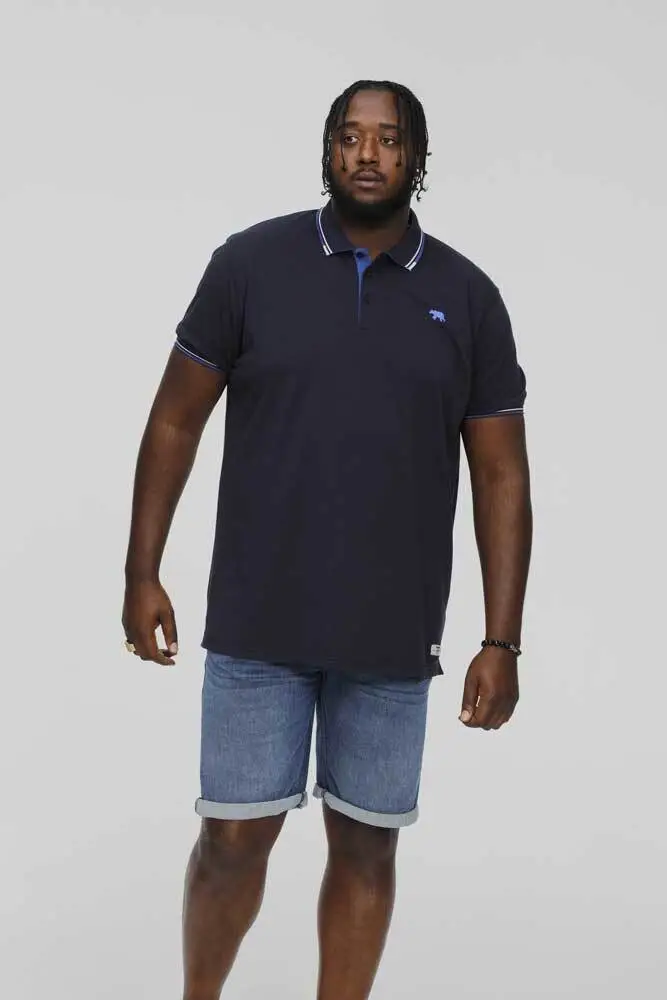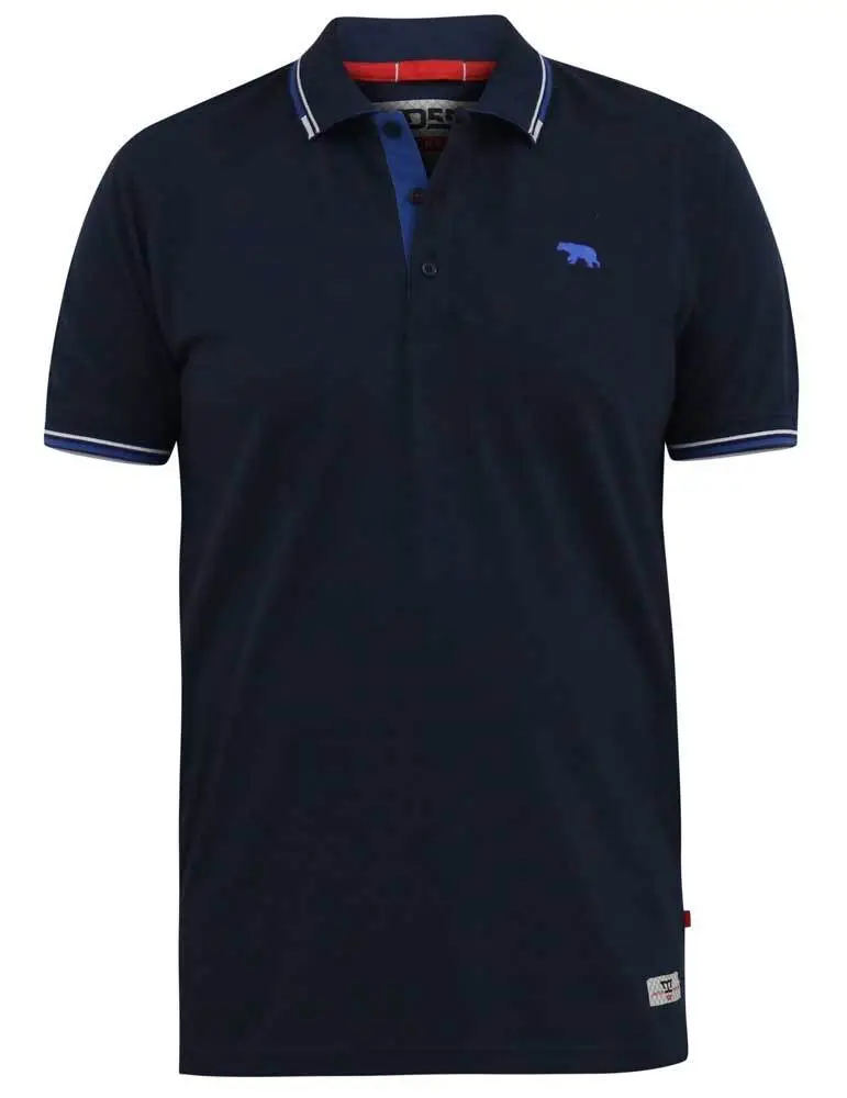 Mørk navyblå polo-shirt med kongeblå kontraststriber - D555