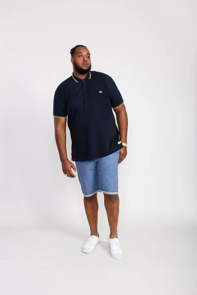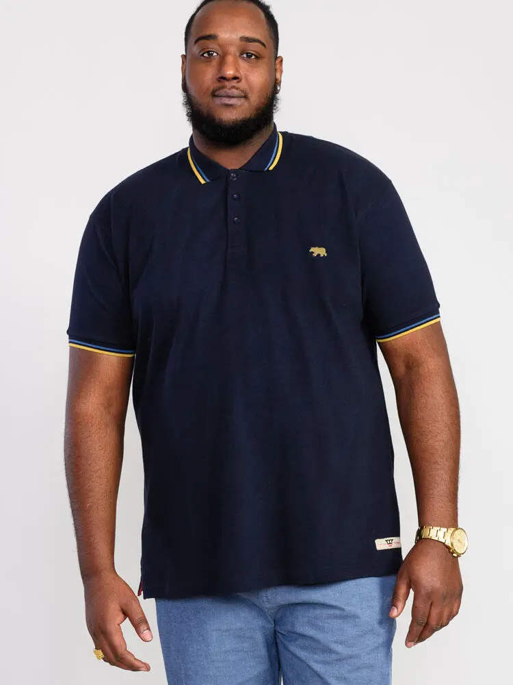 Mørk navyblå Polo-shirt med kontraststriber - D555