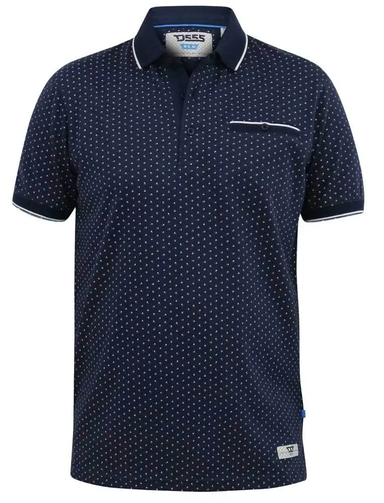 Navy blå polo-shirt med rødt/hvidt All-over print - D555