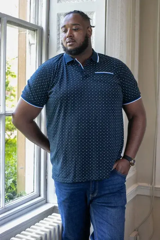 Navyblå AOP polo-shirt med kontraststriber - D555