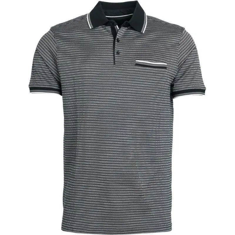 Sort/hvid 'strik' mønstret kortærmet polo-shirt i en blød og lækker kvalitet fra det danske brand Roberto.