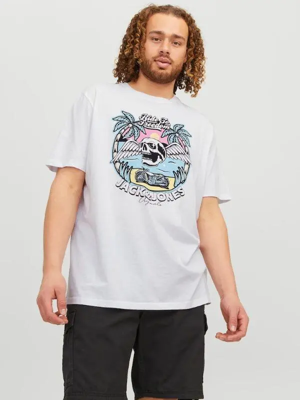 Hvid T-shirt med skull og "Ride To Freedom" print fra Jack & Jones i økologisk bomuld.