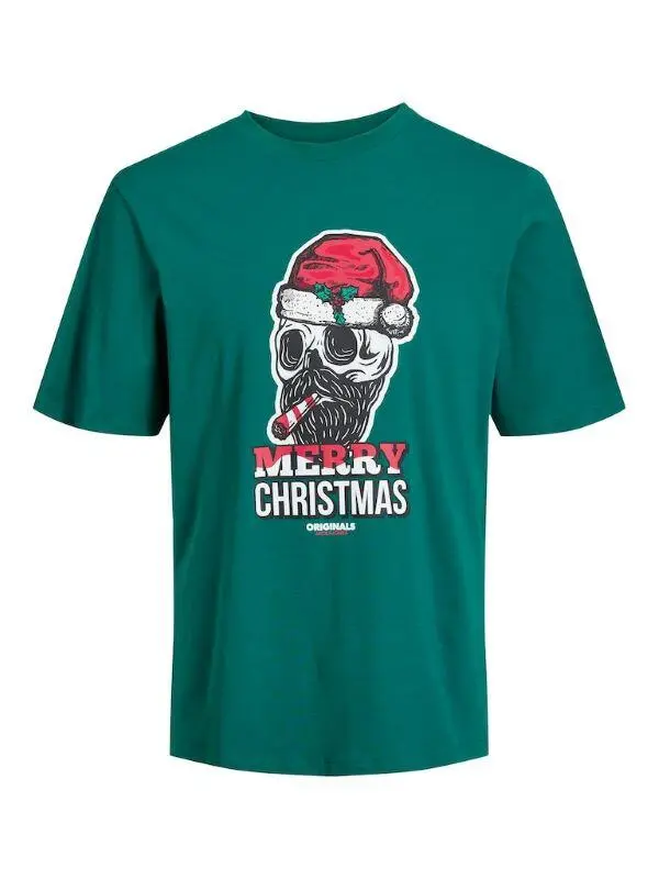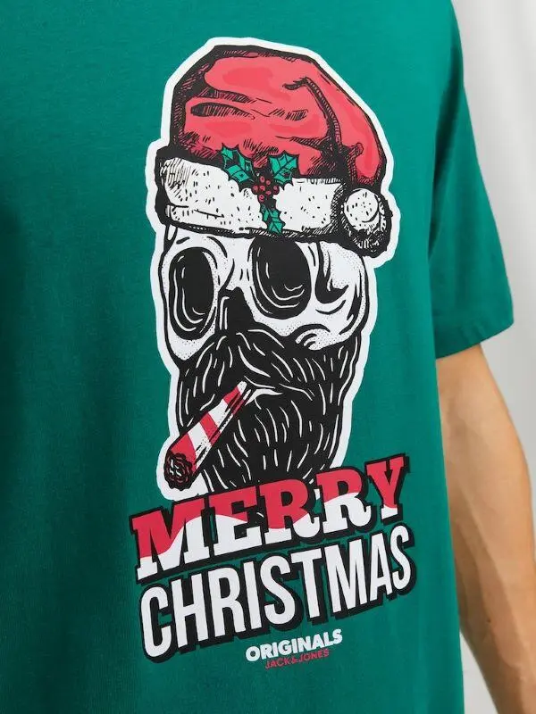 Grøn "MERRY CHRISTMAS" T-shirt med skull - Jack & Jones