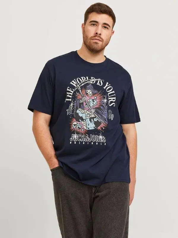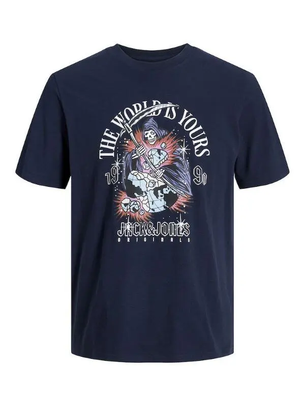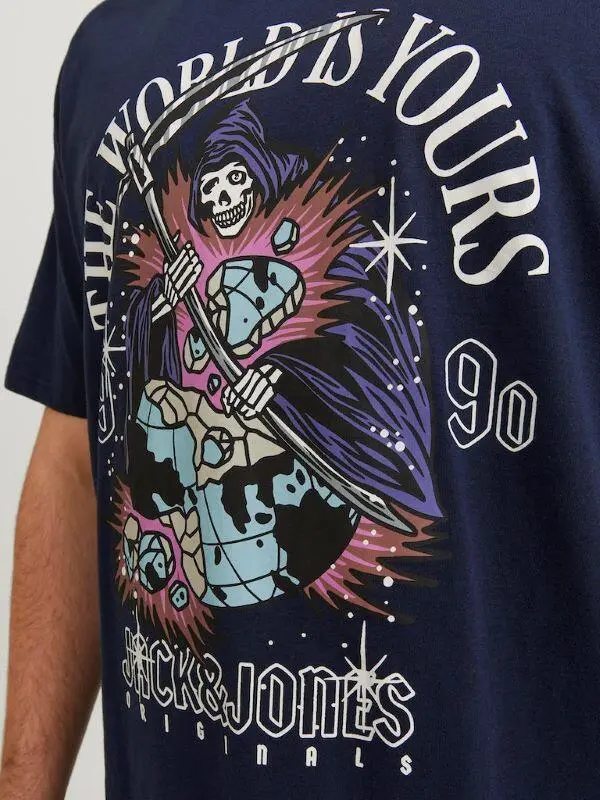 Navy T-shirt med friske farver og døden print - Jack&Jones