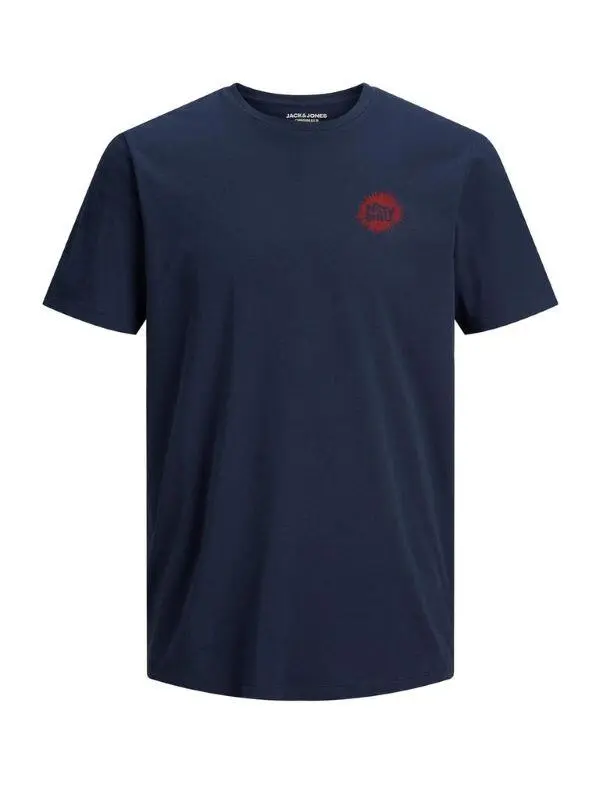 Sjov navyblå T-shirt med tryk på ryggen fra Jack & Jones.