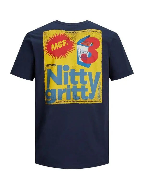 Navyblå T-shirt m. 'Nitty Gritty' tryk - Jack & Jones
