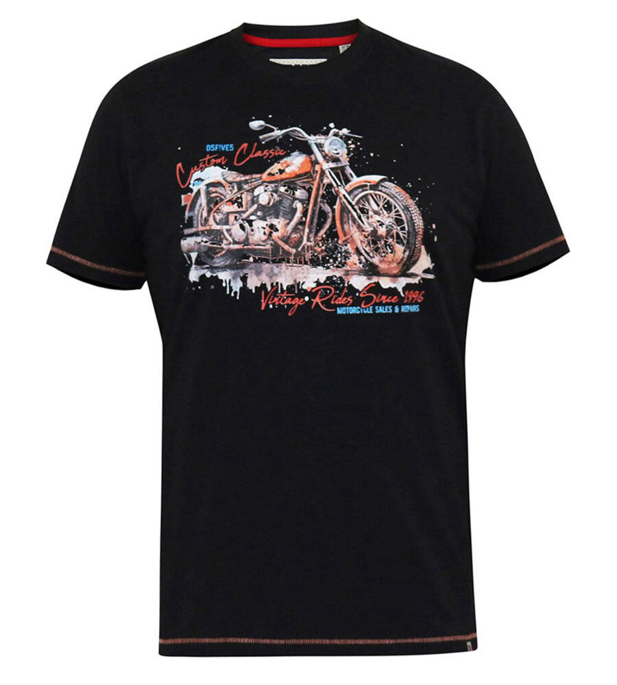 Sort T-shirt med "custom classic motorcykel" print - D555